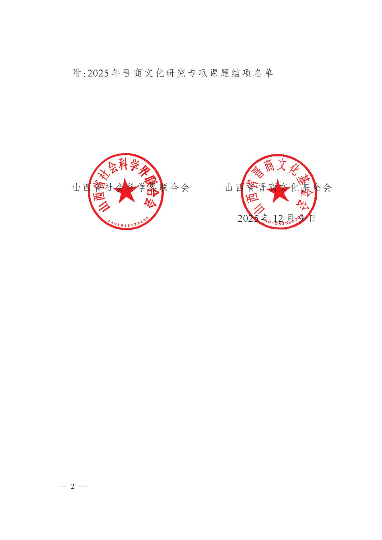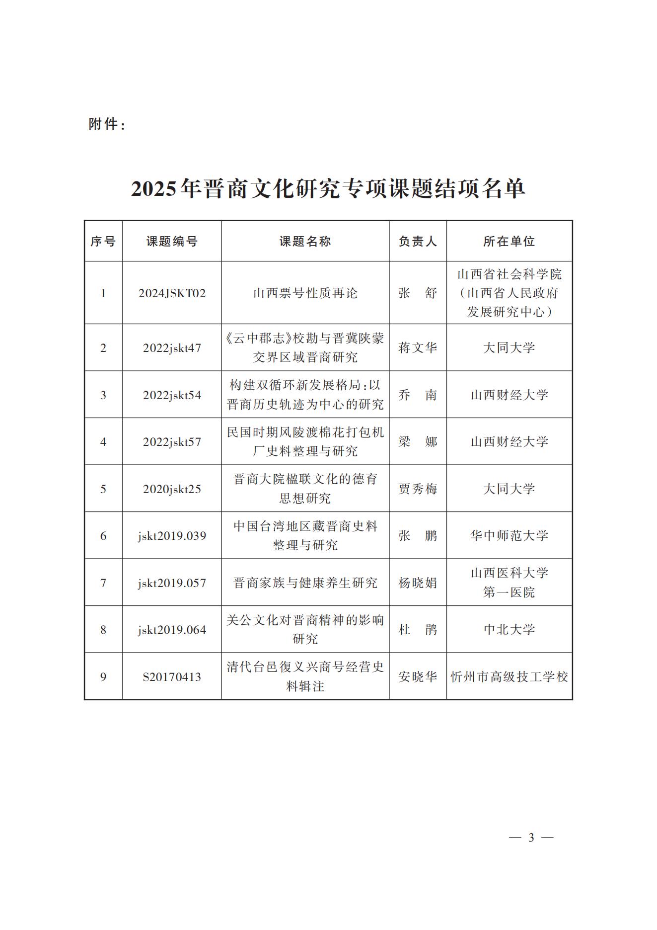 关于“2025年晋商文化研究专项课题” 的结项通知